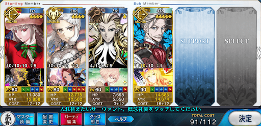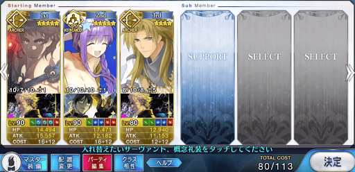 典位+級は敵のHPが高く、3ターン周回編成の難易度が非常に高い。周回効率を上げるために火力スキル持ちを優先すると、NPチャージができない編成になりがちだ。NPチャージの補助がスキルや味方で補えないので、「カレイドスコープ」などの高レア概念礼装が必須になる。