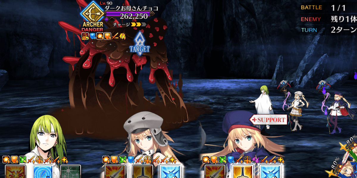 敵はアーチャー1騎のみなため、単体宝具ランサーをアタッカーにしよう。巨人特攻が刺さるため、ドン・キホーテは特におすすめのアタッカーである。