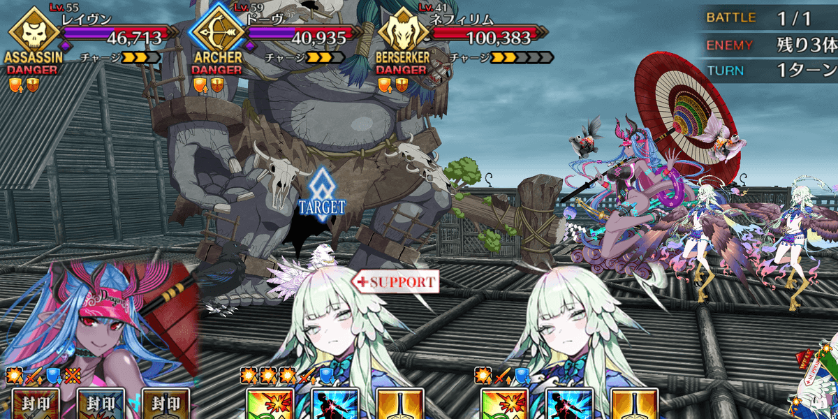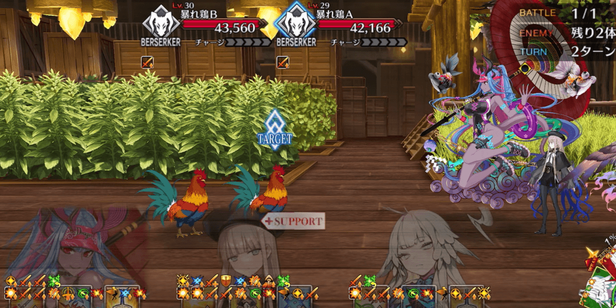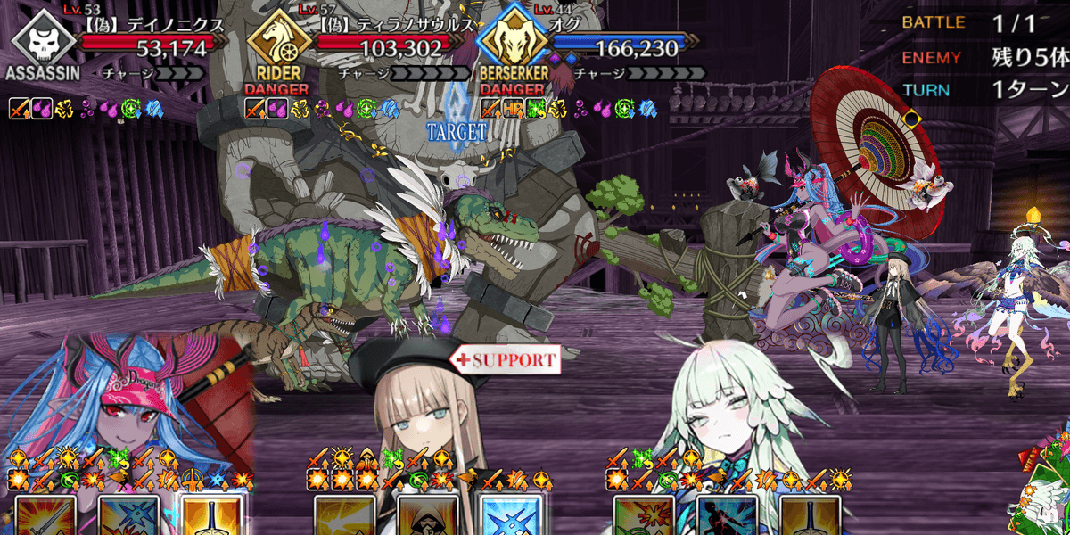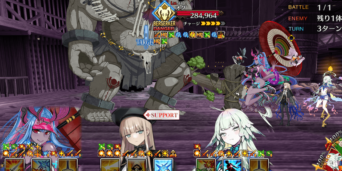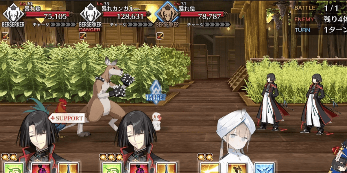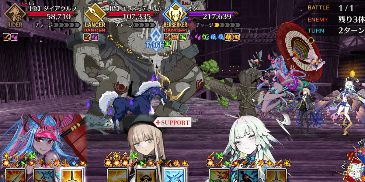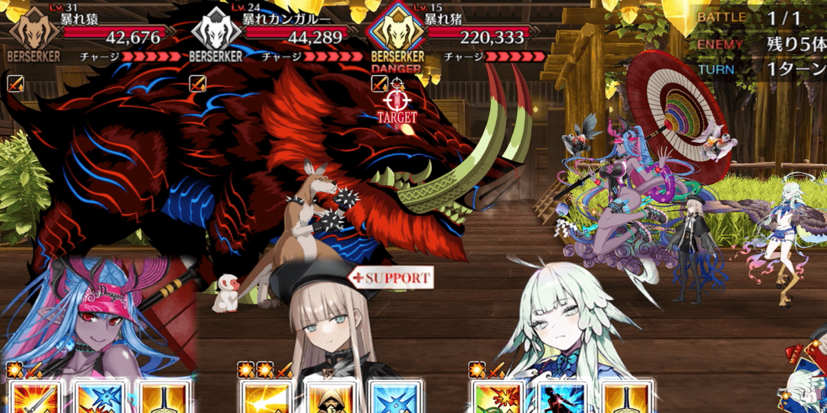 | ギミック | ・敵全員攻撃& クリ発生率アップ ・開幕敵全員チャージMAX ・暴れ猪にターゲット集中(2T) |