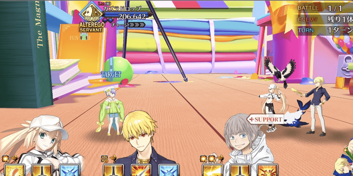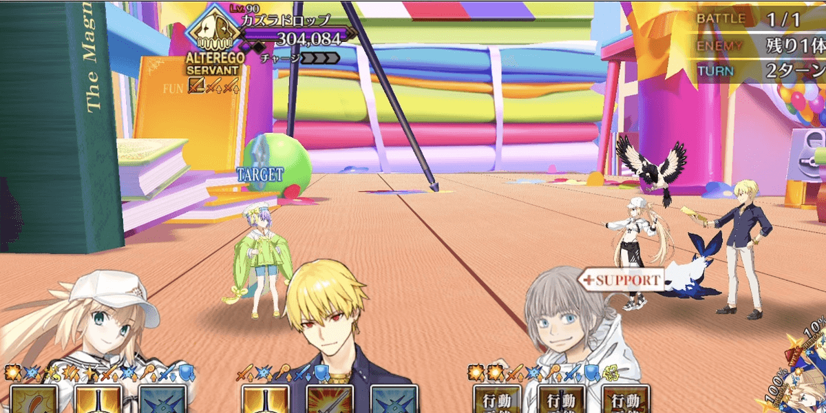 | マスター側開幕ギミックマスター側全体に回避(1回/1T)敵側単体にゴッフパンチ発動(500前後) |
