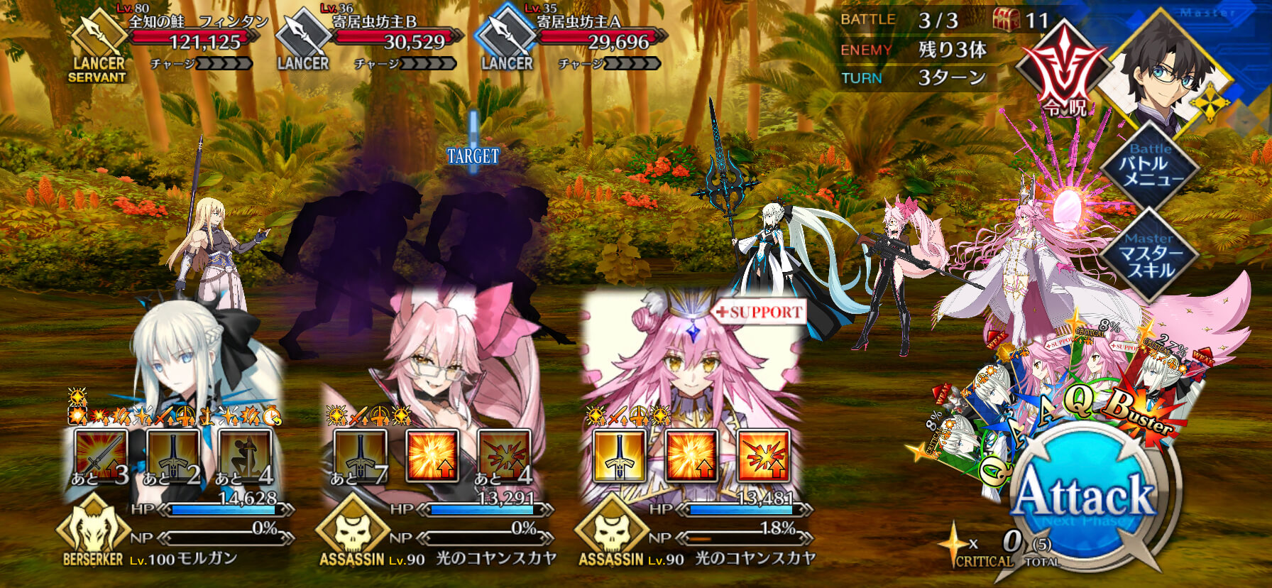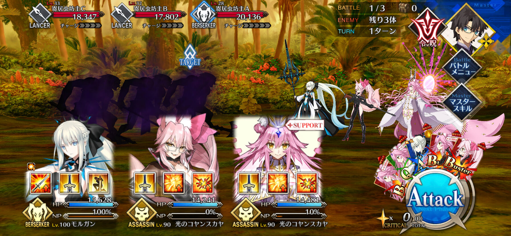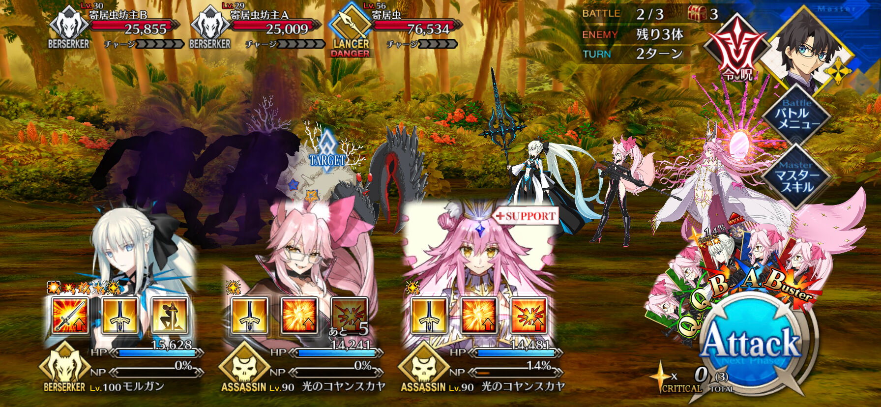 敵のクラスがランサーとバーサーカーであるため、セイバーやバーサーカーを編成して挑むのがおすすめ。いずれもドロップするコンを増やせる点で効率が良い。控えには全種のコンを増やせる「徴姉妹」や「太歳星君」を編成しておこう。