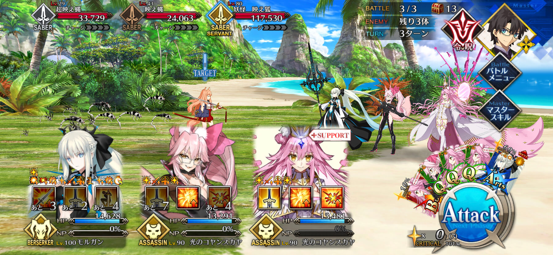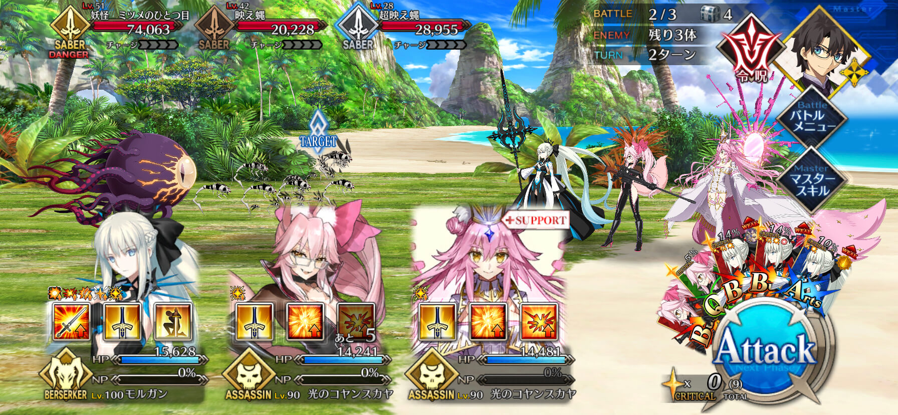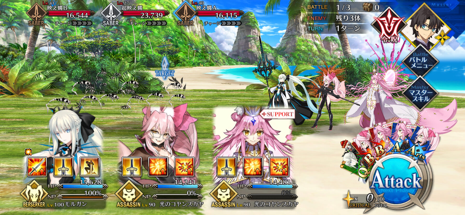 敵のクラスがセイバーであるため、アーチャーやバーサーカーを編成して挑もう。アーチャーもバーサーカーも、ドロップするコンを増やせる点で効率が良い。控えには全種のコンを増やせる「徴姉妹」や「太歳星君」を編成しておこう。