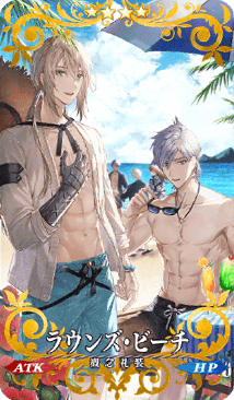 サバフェス2の男性水着霊衣は、オベロンと3人の円卓の騎士だ。円卓の騎士たちは2018年に開催された元祖サバフェス内で描き下ろしの水着姿を描かれており、細部は異なるものの、6年を経て実装された形になる。