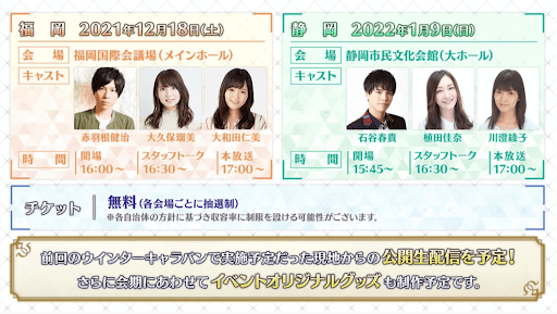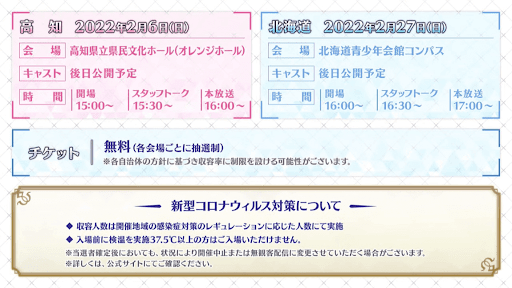 | 放送内容 | ・ぐだぐだ龍馬危機一髪の情報告知 ・新規サーヴァントのお披露目 ・イベント内容先行公開 |