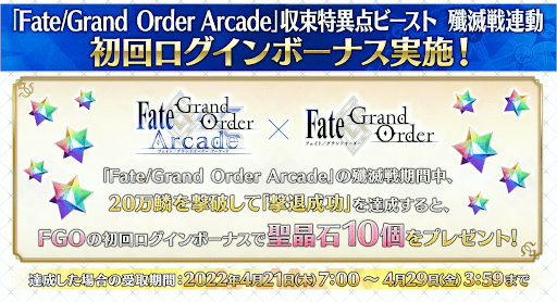 3月27日(日)に公式のTwitterアカウントが発信したツイートをRT(リツイート)するRTキャンペーンが開催予定だ。対象ツイートが3万RT達成すると、FGOユーザー全員に聖晶石6個がプレゼントされる。