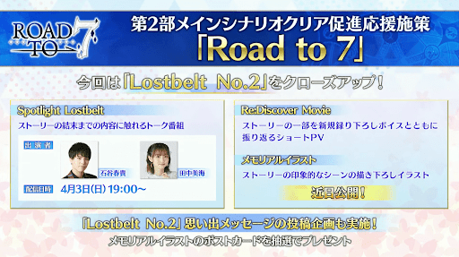 | 放送内容 | ・次回イベント情報発表 ・GWコラボイベ情報発表 ・Road to 7 No2情報公開 ・キャンペーン情報公開 |