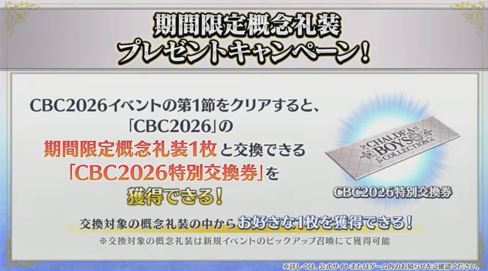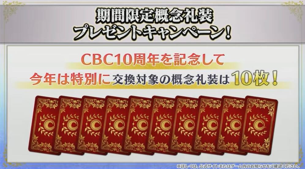 | 今年のCBC礼装は全10種イベント1節クリアで1枚交換可能CBC礼装がイベント前に事前発表マイルーム撮影でクリプターとも撮影可 |
