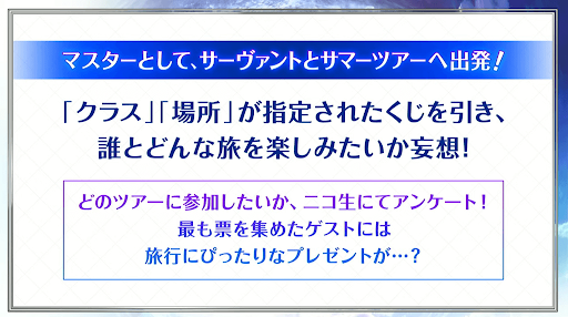 「FGOワルツコラボイベント開催記念生放送」との番組連動キャンペーンが開催される。6月11日(金)19:00より、公式Twitterにてツイートされる動画配信ツイートが、70,000リツイートを達成すると聖晶石12個を入手できる。
