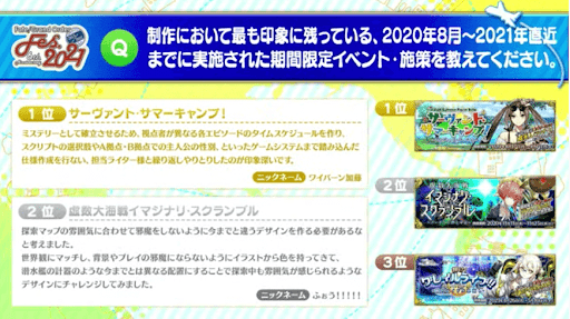| アーケード総身霊衣情報 | スタッフアンケート① |