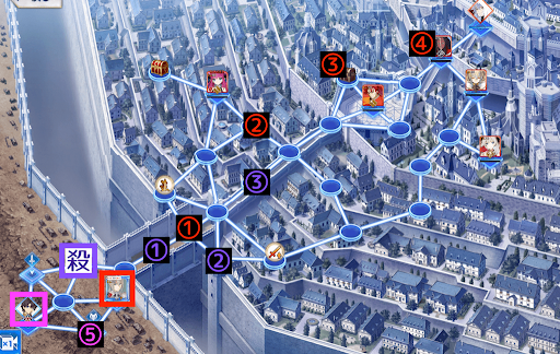 | 12 | ・ベディ・殺をマップ⑫に配置。・ジェロニモが殺を攻撃。 ┗耐久スキルなどを使用して耐える。 |