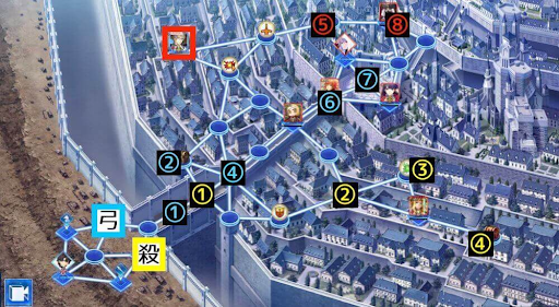 | 1 | ・殺→弓の順でマップ①に配置。 |