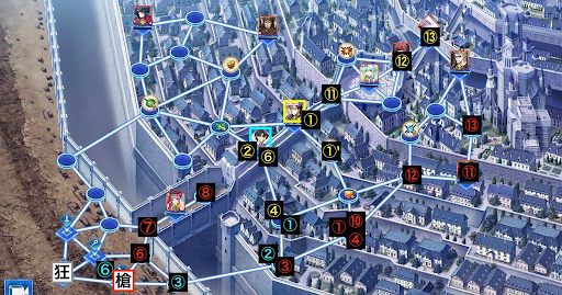 | 11 | ・ランスロット、槍をマップ⑪に配置。・ランスロットが小太郎に攻撃を受ける。 ┗「緊急回避」を使用しておく。 ・槍が坂田金時に攻撃を受ける。 ┗ブレイクはされてもOK。 |
