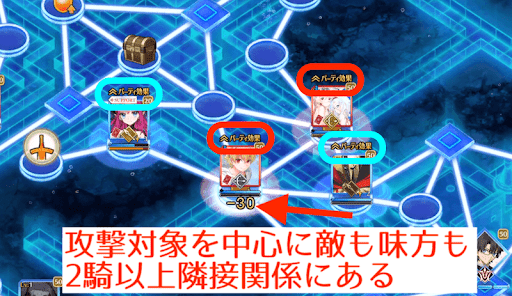 攻撃対象を中心に味方キャラを隣接させる