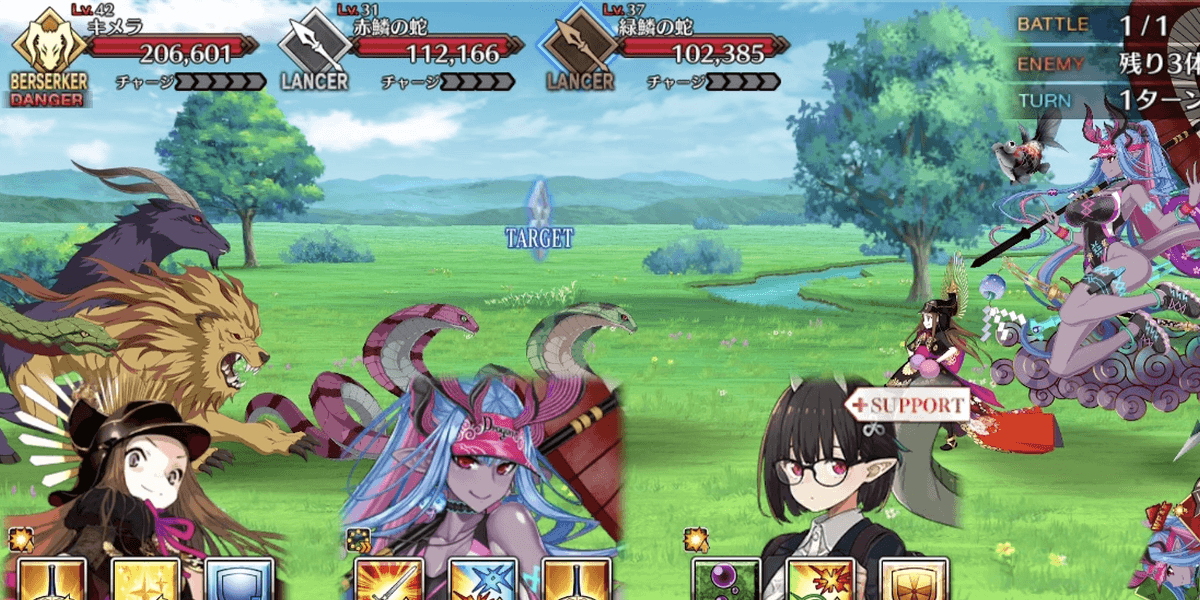 敵はキメラや蛇エネミー3体であるため、地属性特攻の全体宝具で攻めるのがおすすめ。配布サーヴァントで交換できる水着ワルキューレやバーサーカーの水着伊吹をアタッカーにするのも良い。
