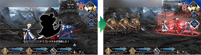 | 宝具換装持ち | 【編成段階時の宝具色に応じて有効】 ・再臨で換装するタイプ ・編成ボーナス一覧で確認できるのは2種類だが、周回時に有効なのは1種類【基本色のみ有効】 ・スキルでのみ換装するタイプ |