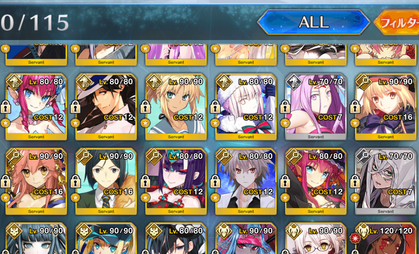 威力と絆アップするキャラのみ表示する場合は「蛇頭竜尾」系をONに、「〇〇トレーナー」系をOFFにすると良い。ただし、サポートサーヴァントの表示もなくなるため、必要に応じて「〇〇トレーナー」の一部はONにしよう。