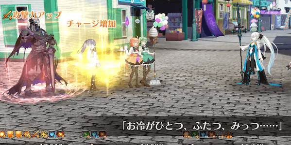 開幕 | 【本日のオススメだよ!】 ・自身にクイック特殊耐性付与(約50%) ・クリ率アップ ・クリ攻撃時にチャージを1増やす ・マスター側全体にクイック性能アップ付与(約25%) |