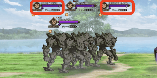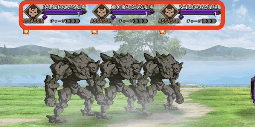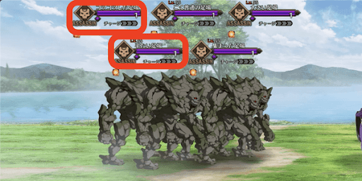 赤い枠で囲っている敵が「良い足場」となるゴーレムである。すべてのwaveで左上の敵が「良い足場」であるため、ひたすら左上の敵を攻撃すればクリアは容易だ。ハサン系サーヴァントと戦いたくない場合は、正解のゴーレムのみをブレイクしよう。