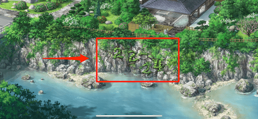 窟の中に 潜む者【ヒント位置】 川付近の壁 |