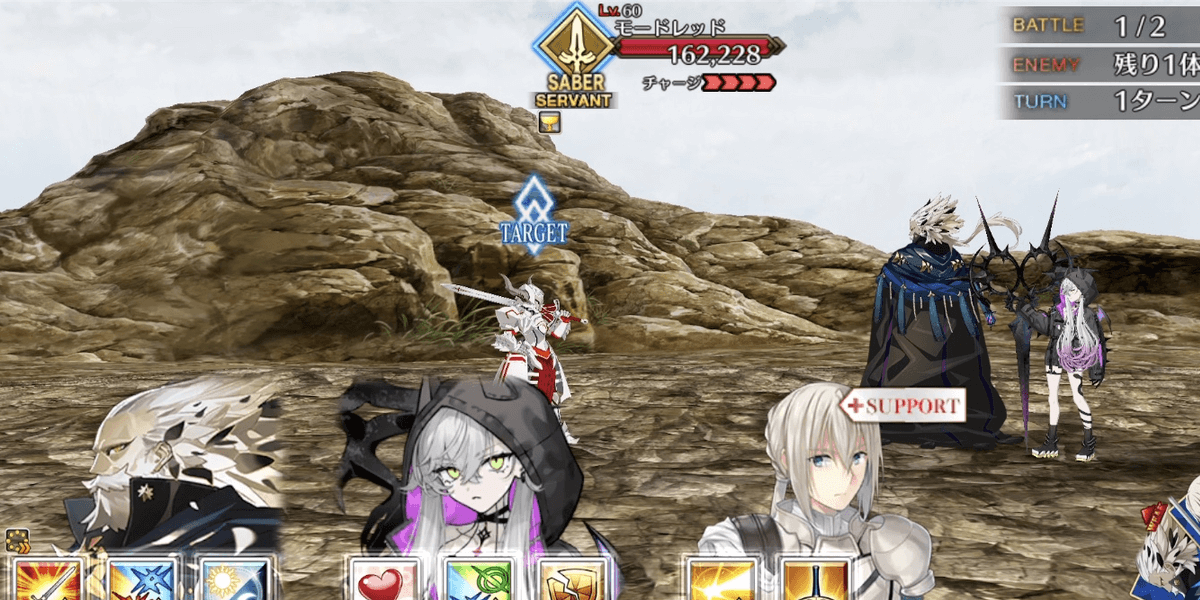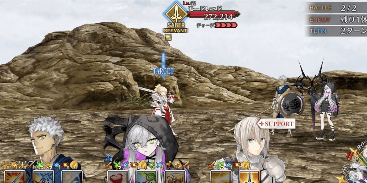 | ギミック | ・モードレッドは毎ターンチャージMAX ・1waveは単体EX攻撃 ・2waveは全体攻撃宝具 |