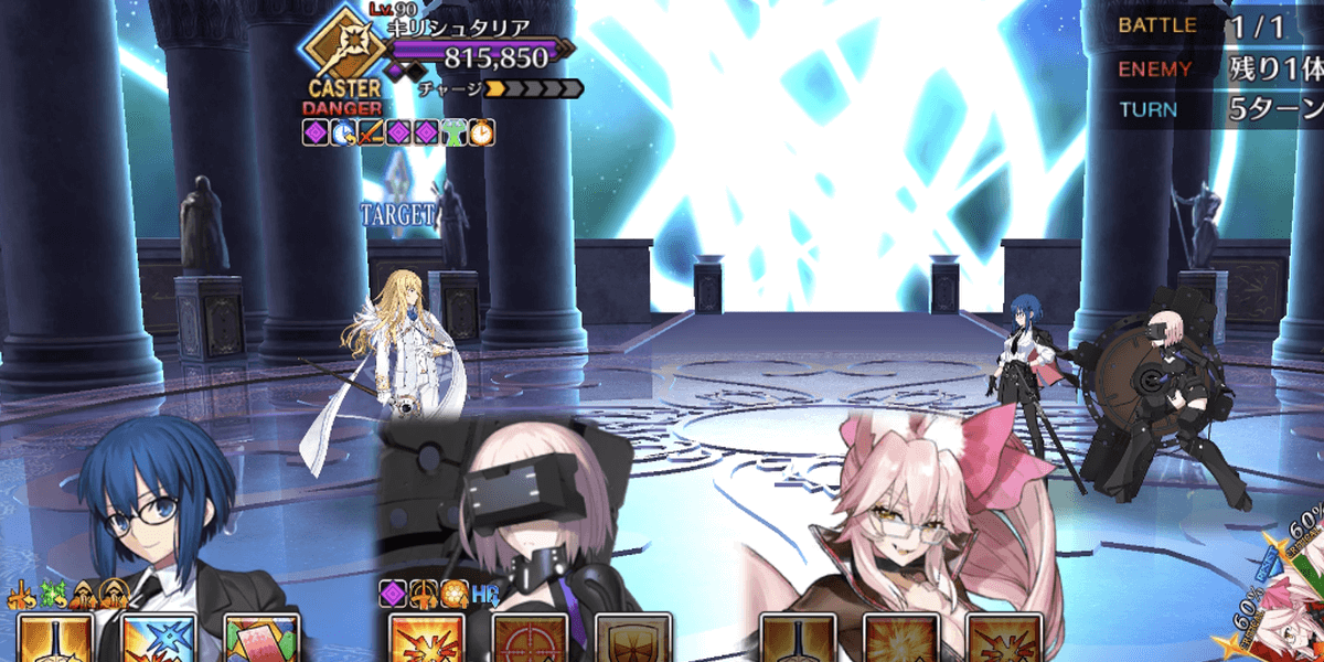 キリシュタリアのゲージが3以上の状態の時は、宝具が発動されると見越して動こう。キリシュタリアのチャージ段階は5であるが、自身のチャージを2つ増やすスキルを持つため、チャージ3の状態でも宝具を発動してくる。