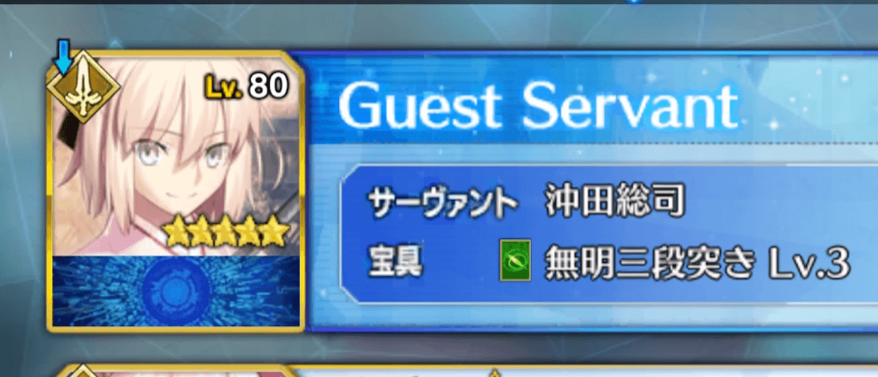 ぐだぐだパビリオンクエストでは、NPCとして沖田総司が選択できる。野良の沖田を探す手間が省けるため、ぐだぐだパビリオンクエストでミッション達成するのがおすすめ。