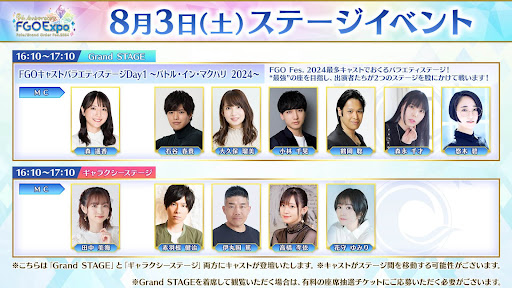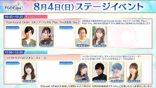 FGOフェスのプログラムと出演声優一覧