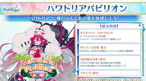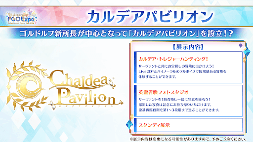 「カルデアパビリオン」内で展開される「トレジャーハンティング」のラインナップが発表されている。トレジャーハンティングは、Live2Dとバイノーラル音声をフルボイスで楽しめるコンテンツである。