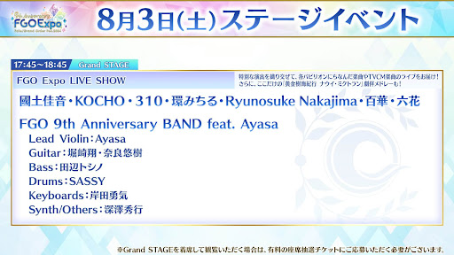 | 17:45-18:45 | FGO Expo LIVE SHOW |