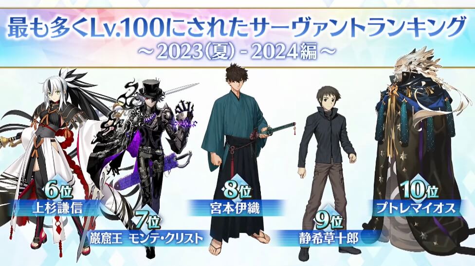 | 2023年(夏)〜2024年(夏)までに Lv100にされたランキング |