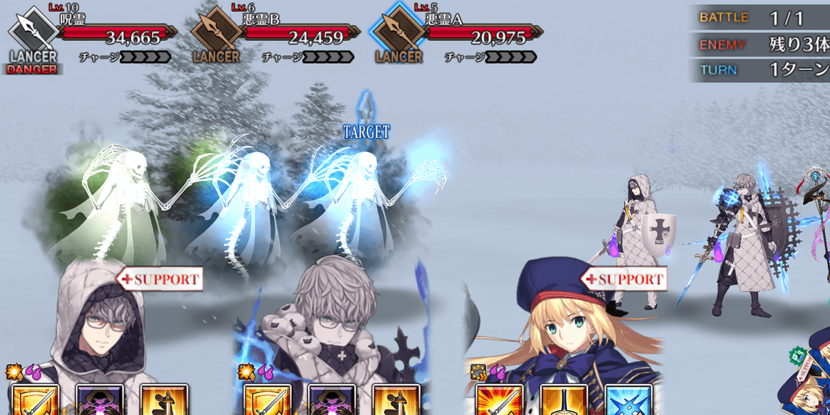 敵3体を撃破すればクリアなため、全体宝具で一掃しよう。NPCモレーがクラス相性有利なため、モレーにNP供給を行い全体宝具で倒すのがおすすめだ。