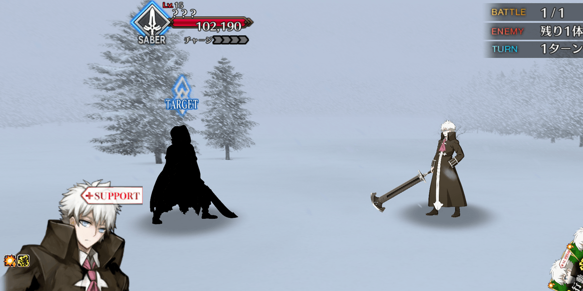 1ターン経過でクリアとなるため、好きなコマンドカードを選んでターンを終わろう。サンソンがスタンするためダメージを与えらず、敵も攻撃してこないため、絶対に勝利できるバトルだ。