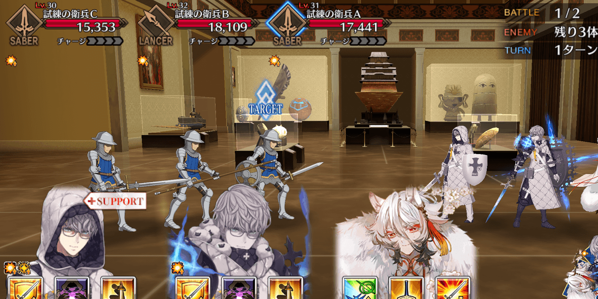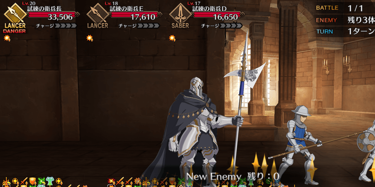 敵が3体ずつ出現するクエストなため、全体宝具2回で突破しよう。一番HPが高い敵がランサーのため、セイバーの全体宝具がおすすめだ。