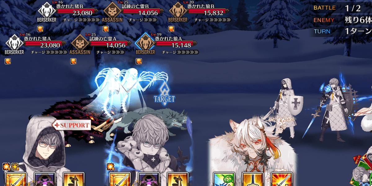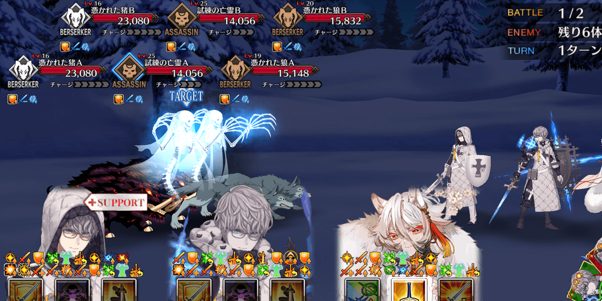 2waveのクエストなため、各waveを全体宝具で突破しよう。敵のHPは高くないため、相性有利のキャスターかバーサーカーの全体宝具2回で簡単にクリア可能だ。