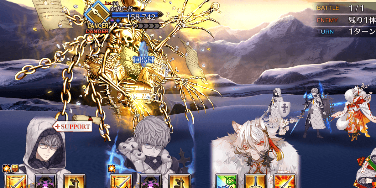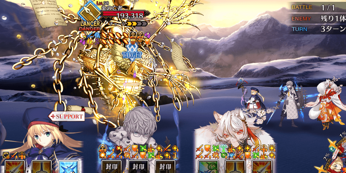 | 敵ギミック | ・敵は解除不可のダメージカット(1,000/3回)所持 |