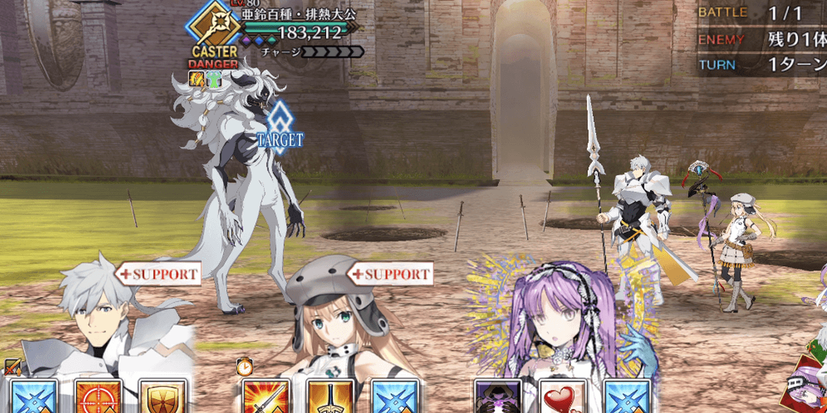 ウッドワスの攻撃が脅威なため、バフを解除するのは1ターン目がおすすめだ。NPCキャストリアのスキル1とパーシヴァルのスキル1を使って、パーシヴァルのNPを100%にするのがおすすめ。