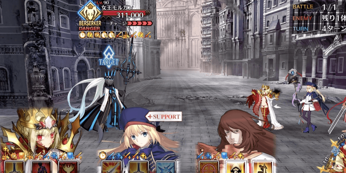 敵のモルガンはパッシブギミックにより、防御不利が無効化されている。全てのクラスからの攻撃が等倍となるため、特攻や等倍でもダメージが高いアタッカーを編成すると良い。