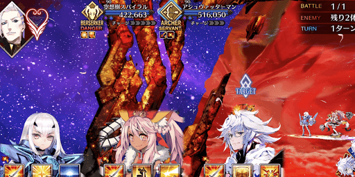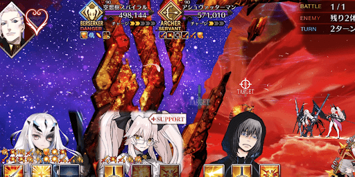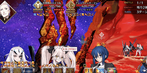 アシュヴァッターマンが退場するまでは、HP回復や対粛正防御のお陰で消耗が少なく安定して攻略が可能だ。空想樹単騎になると全体攻撃の回数が増えるため、控えにも対バーサーカーのアタッカーが必要となる。クリアの目安は、全体で15ターン前後だ。