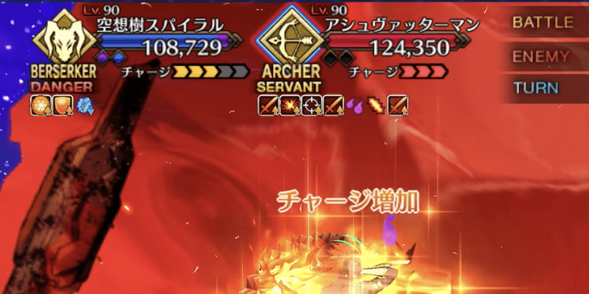 空想樹をブレイクした後は、毎ターンチャージが1増加するため、宝具の発動頻度が高まる点に注意が必要。また、アシュヴァッターマンのチャージと揃う可能性も念頭に置くべきだ。
