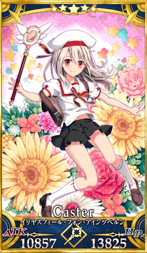 | 特性 | 人属性、中立、善、女性、人型、今を生きる人類、イリヤ、ヒト科、霊衣を持つ者、浮遊サーヴァント、子供のサーヴァント | |