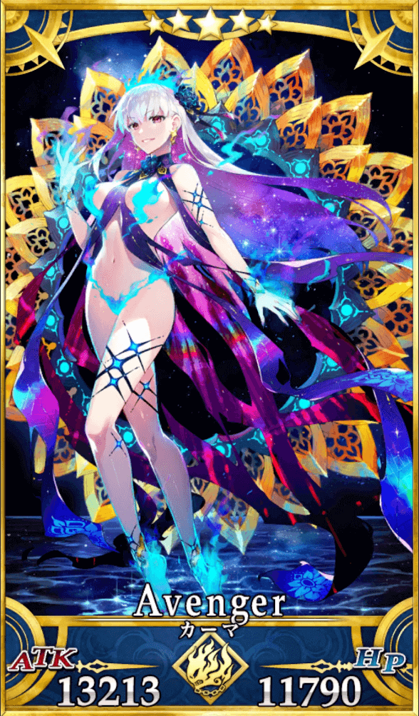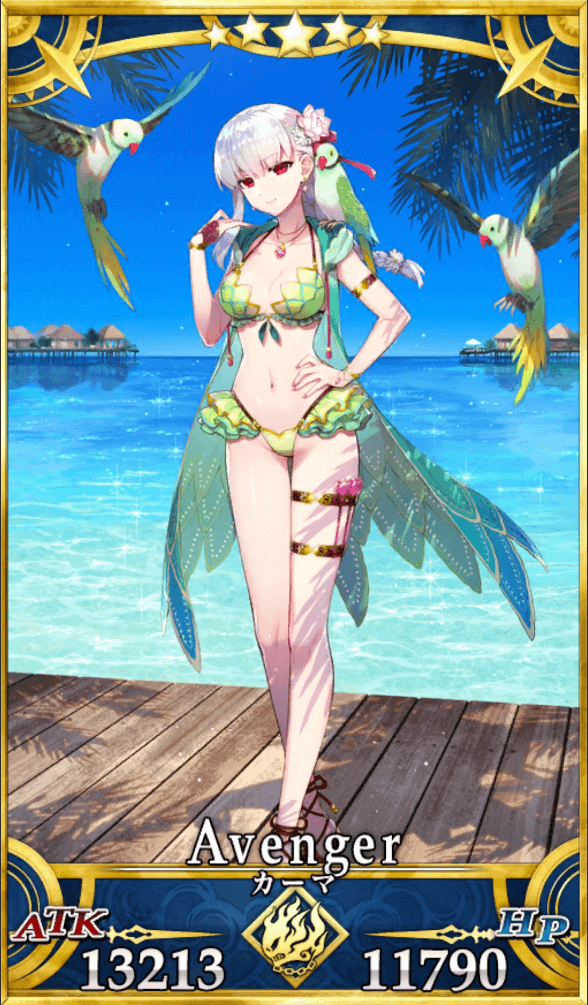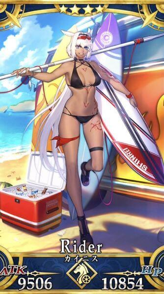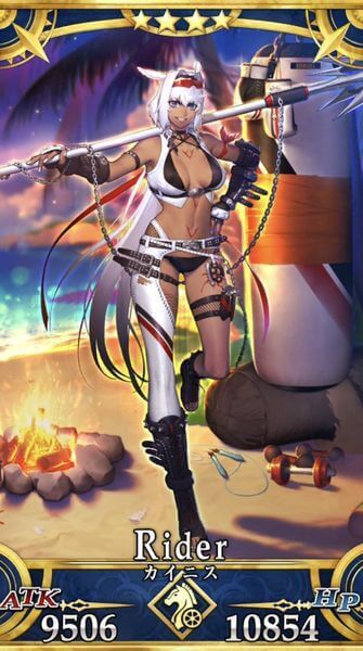 | 特性 | 天属性、中立、悪、女性、人型、騎乗、神性、魔性、ヒト科、浮遊サーヴァント、宇宙飛行できるサーヴァント、夏モードのサーヴァント | |