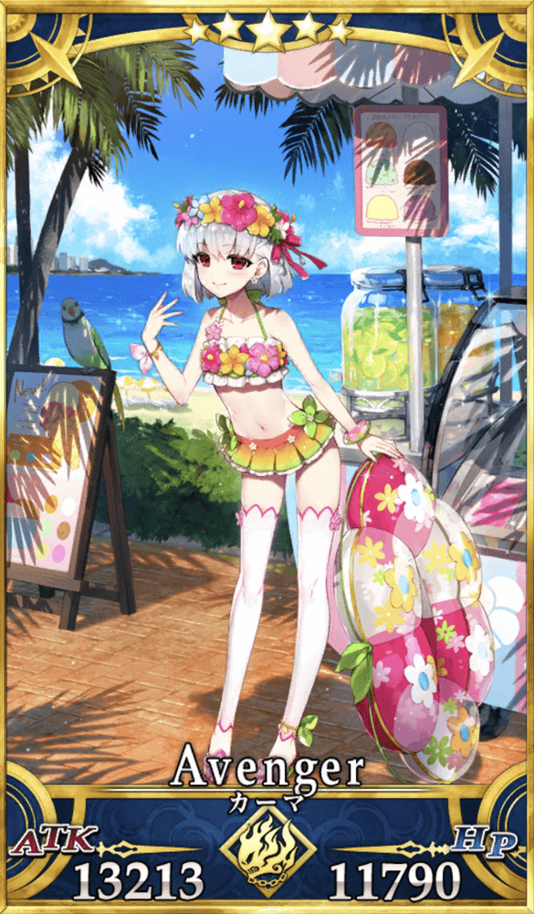 | 特性 | 人属性、混沌、夏、女性、人型、ヒト科、夏モードのサーヴァント | |
