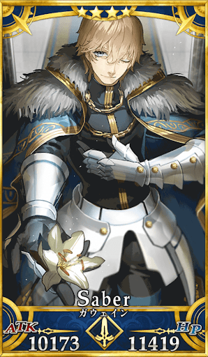 | 特性 | 地属性、秩序、善、男性、人型、騎乗、愛する者、円卓の騎士、セイバークラスのサーヴァント、ヒト科 | |