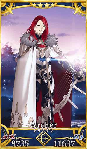 | 特性 | 地属性、秩序、善、男性、人型、騎乗、円卓の騎士、愛する者、ヒト科、霊衣を持つ者、セイバークラスのサーヴァント | |