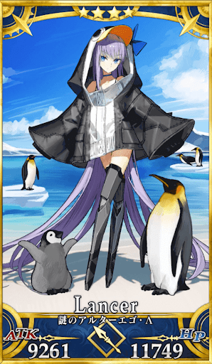 | 特性 | 地属性、秩序、善、女性、人型、騎乗、神性、竜、魔性、機械、霊衣を持つ者、夏モードのサーヴァント | |