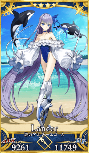 | 特性 | 地属性、秩序、善、女性、人型、騎乗、神性、魔性、機械、竜、霊衣を持つ者、夏モードのサーヴァント | |
