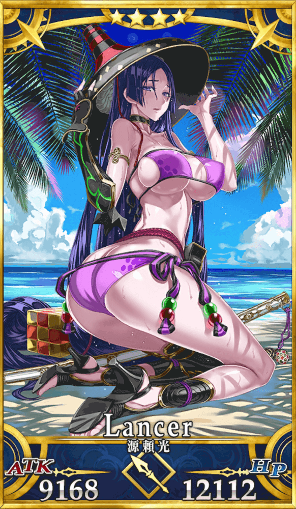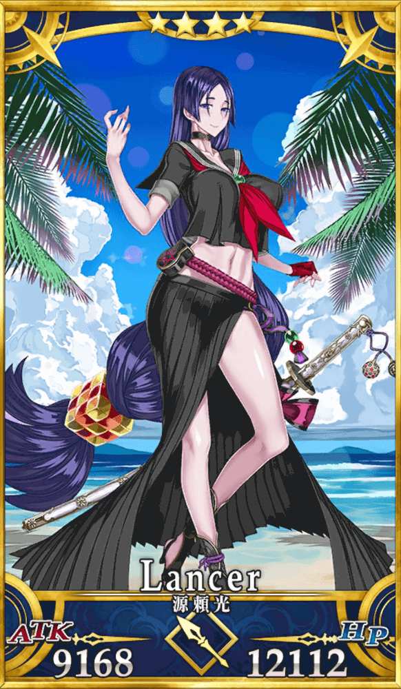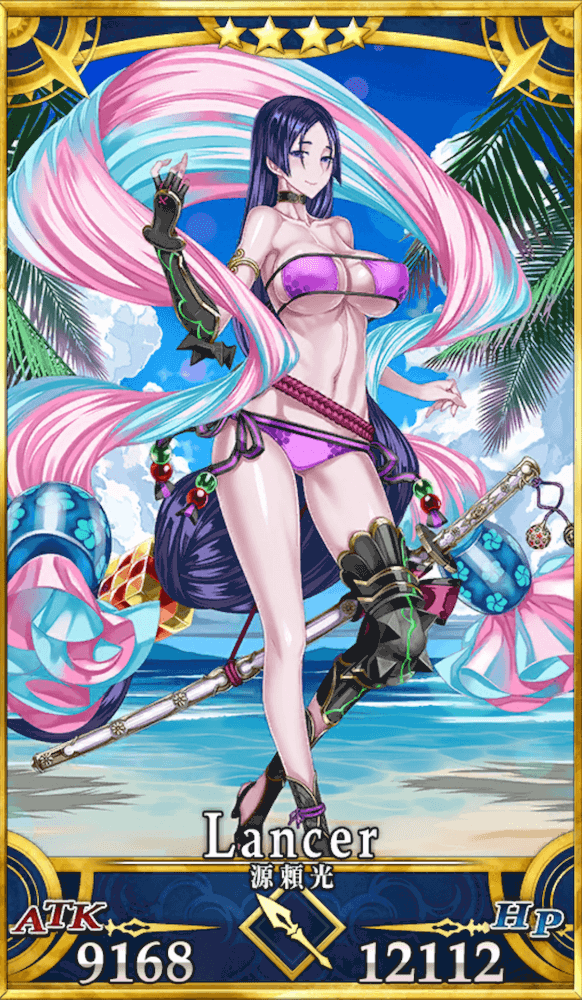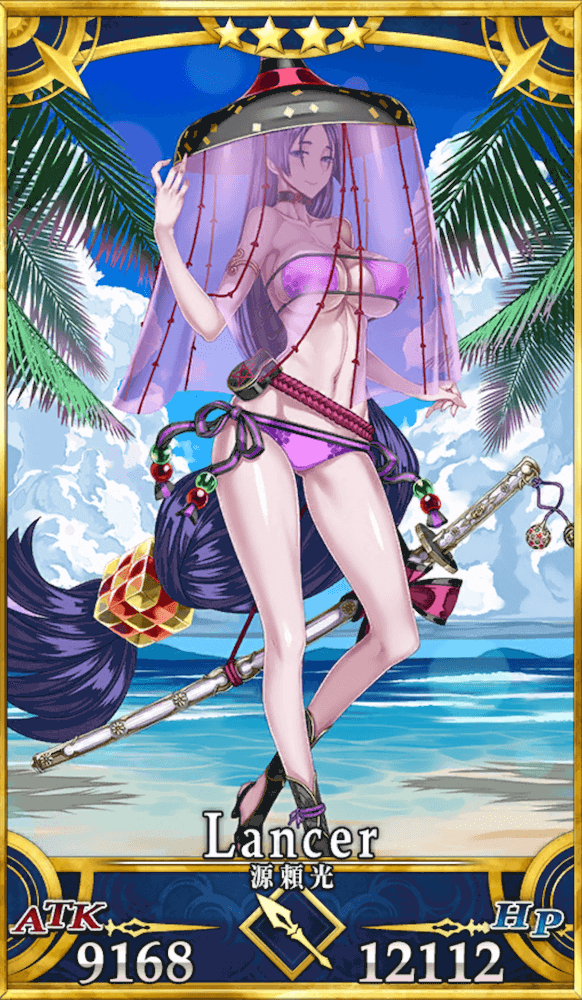 | 特性 | 天属性、秩序、善、女性、人型、騎乗、神性、源氏、ヒト科、夏モードのサーヴァント | |