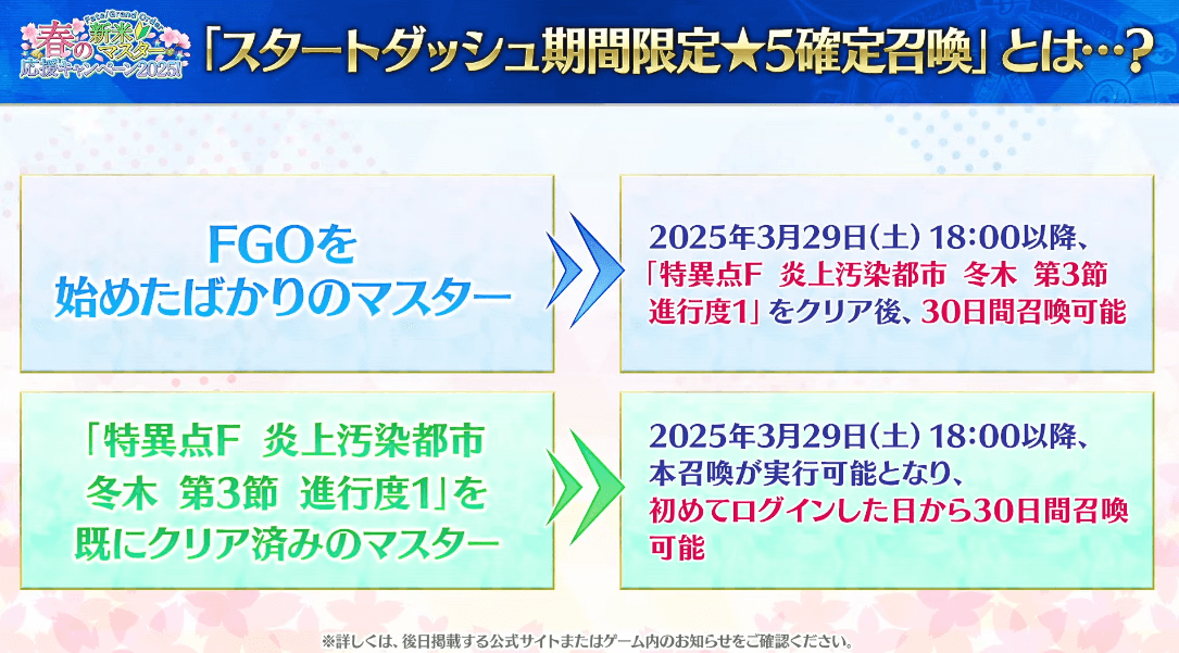 すでに条件を達成している場合、2025年3月29日以降の初回ログイン時に即時ガチャが開催される。開放されたタイミングから丸30日間が、ガチャの開催期間となる。