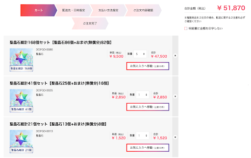| 聖晶石セット | 購入回数 | 合計 | |