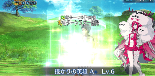 「授かりの英雄」で、毎ターンHP回復・スター獲得・NP獲得の効果を得られる。効果は全て5ターンで、それぞれ耐久・クリ殴り補助・宝具回転率アップに役立つ。アルジュナはクラスのスター集中度が高いため、スター獲得を持つ味方と組ませればより安定したクリティカルを狙える。